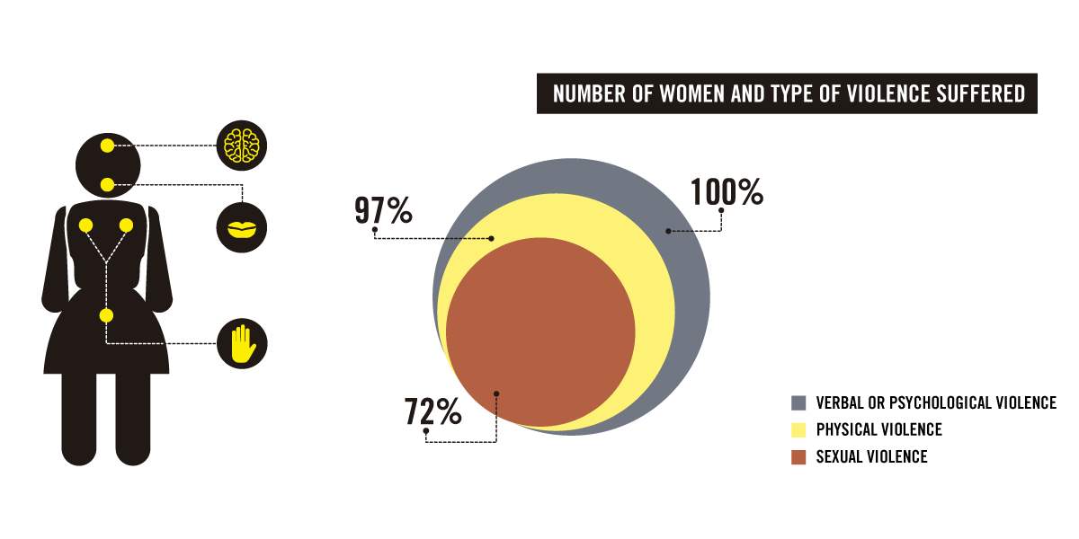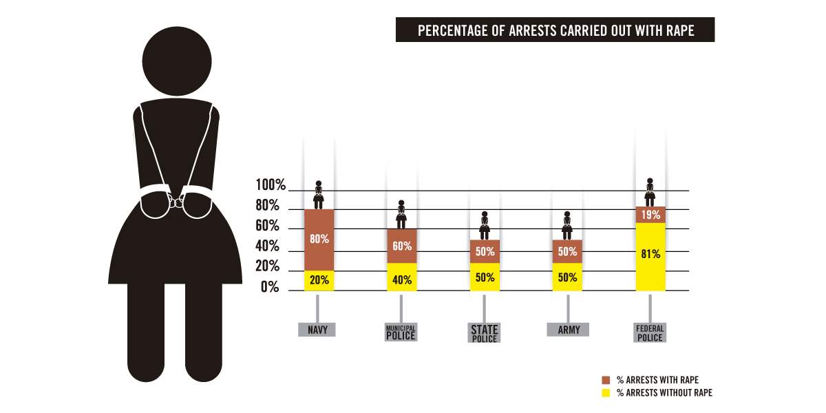 All of the 100 women held in federal prisons who reported torture or other ill-treatment to Amnesty International said they had experienced some form of sexual harassment or psychological abuse during their arrest and interrogation by municipal, state or federal police officers or members of the Army and Navy. Seventy-two said they were sexually abused during their arrest or in the hours that followed. Thirty-three reported being raped.